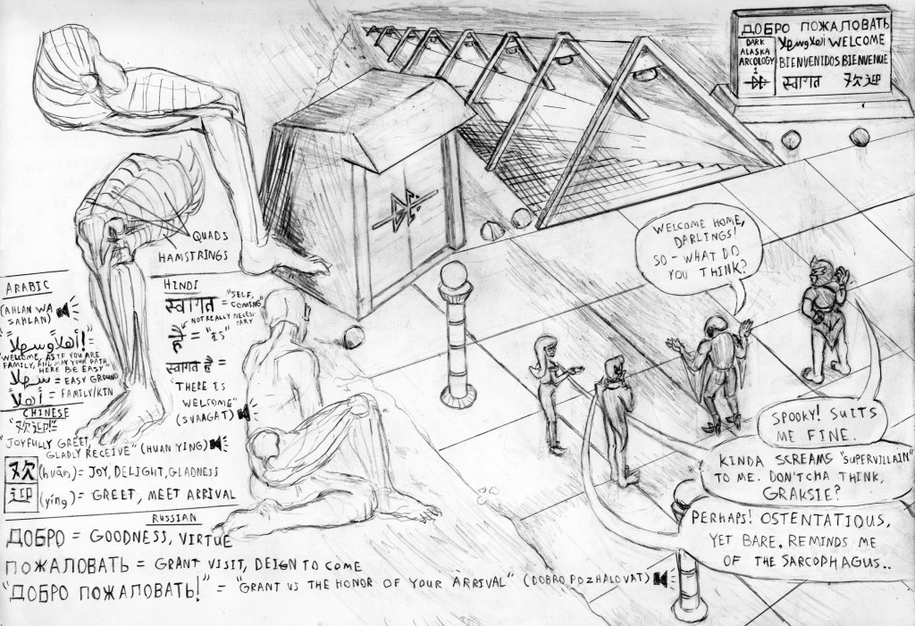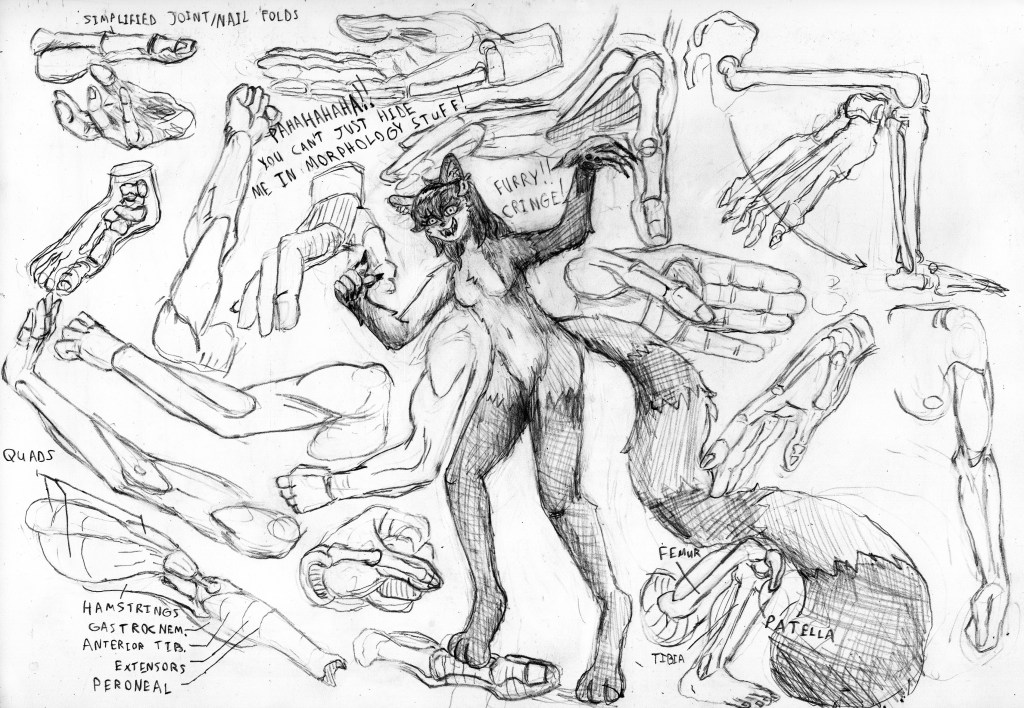 Excuse the folds and smudges, friends. This doesn’t include every drawing I’ve ever done, but it does have the lion’s share of what’s in my sketchbooks, and I don’t pull punches – you can see the good, the bad, and the ugly, starting with the very first scrawled doodle in my Cisco networking studies composition book. Updated about once a month.